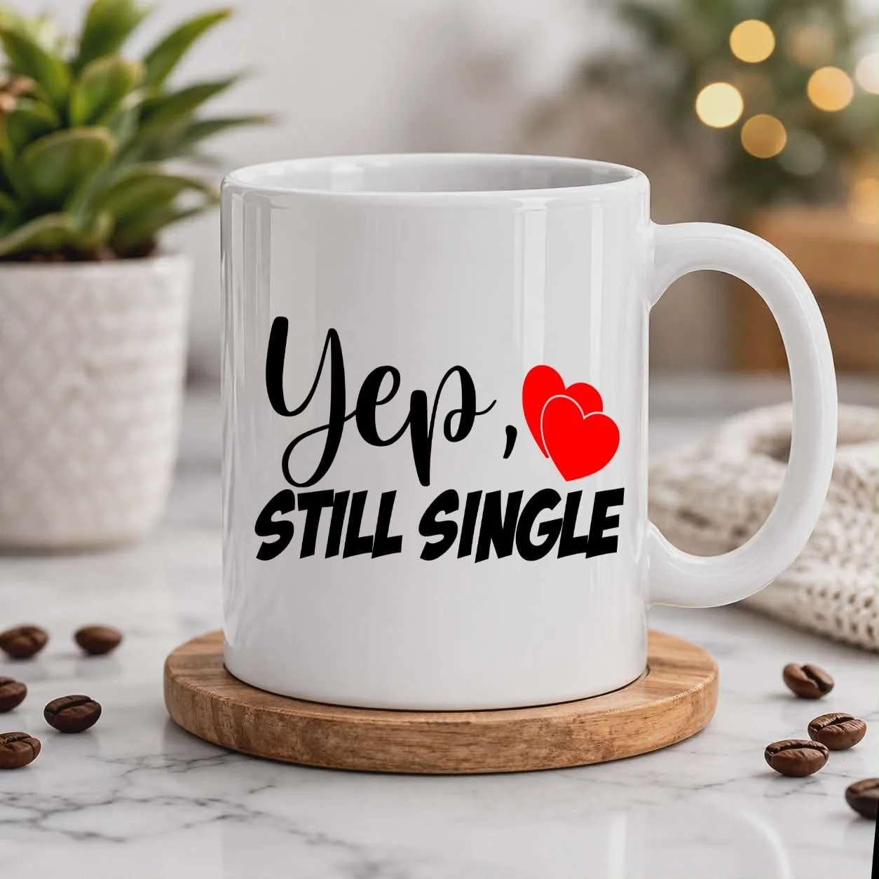 11oz Sublimated Ceramic Coffee Mug – “Yep, Still Single” Design