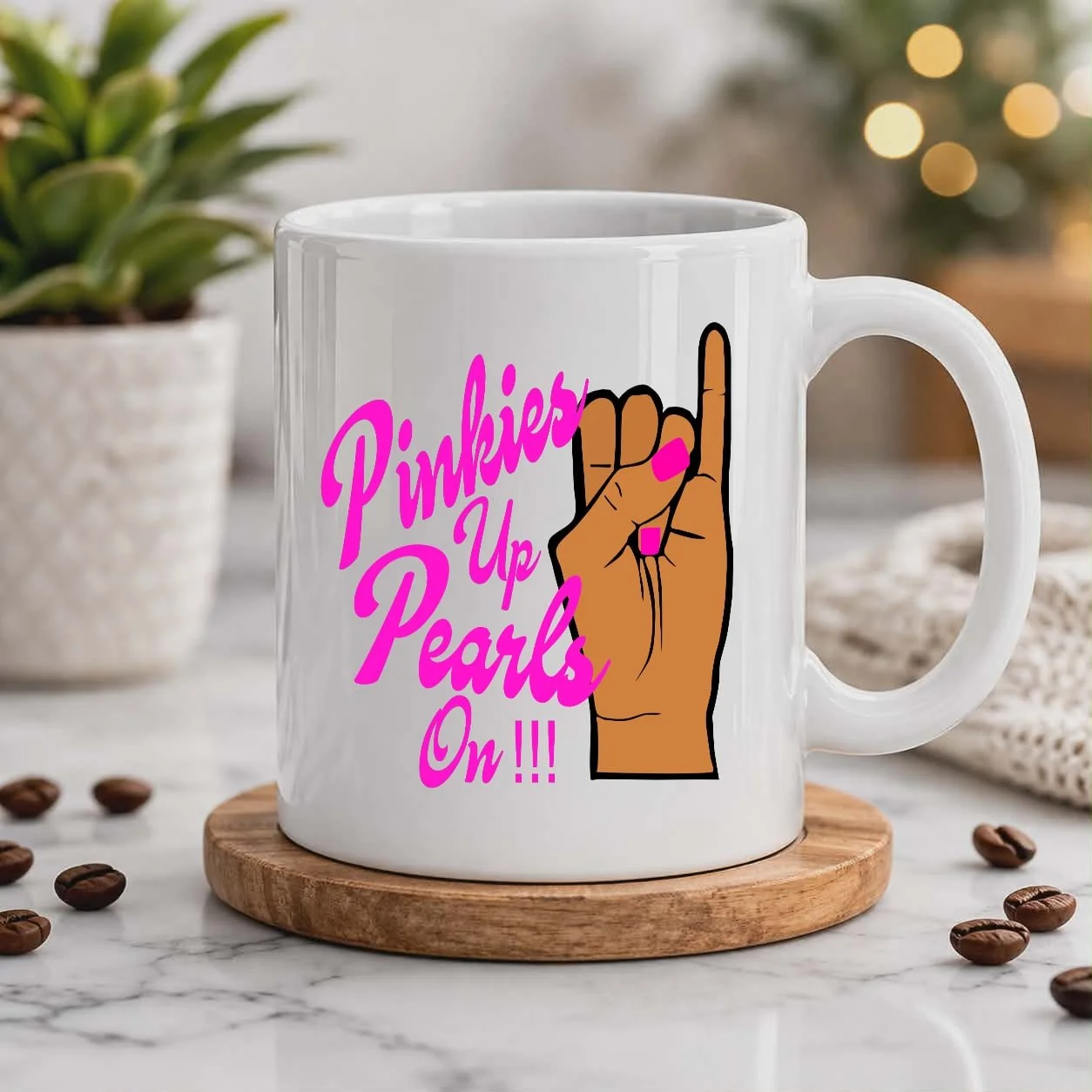 “Pinkies Up, Pearls On!!!” Statement Mug – 11oz Ceramic