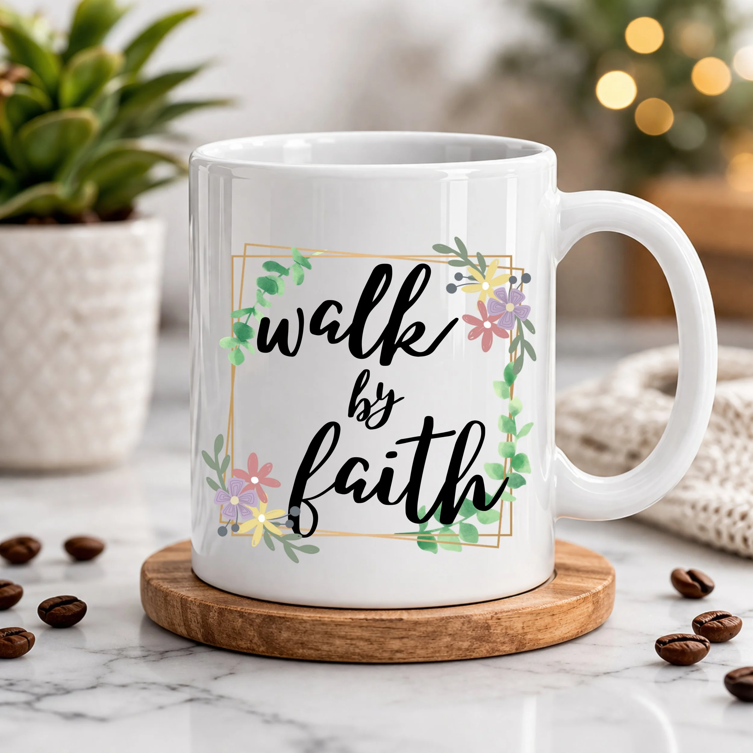 11oz Sublimated Ceramic Coffee Mug – “Walk by Faith” Design