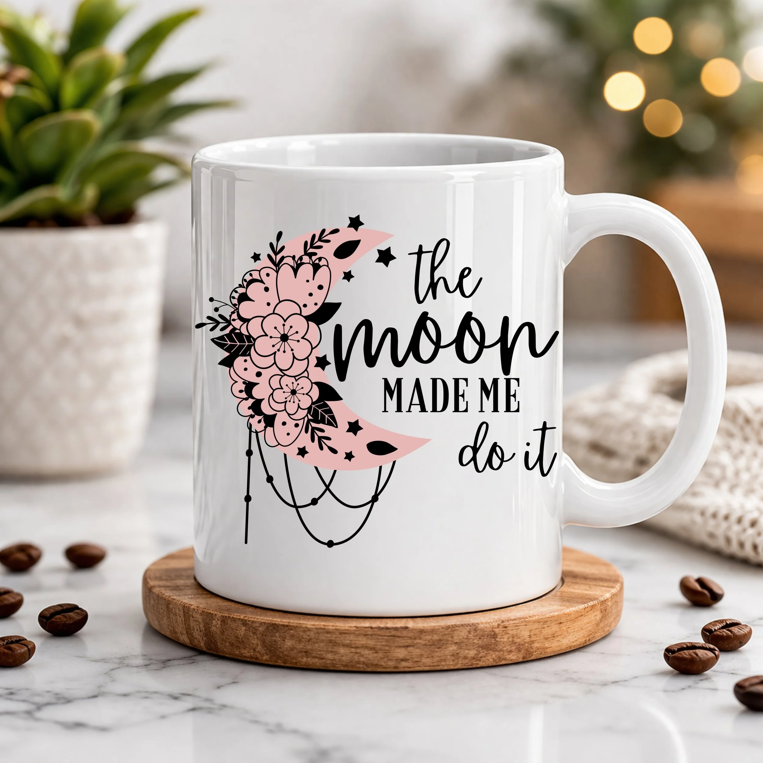 11oz Sublimated Ceramic Coffee Mug – “The Moon Made Me” Design