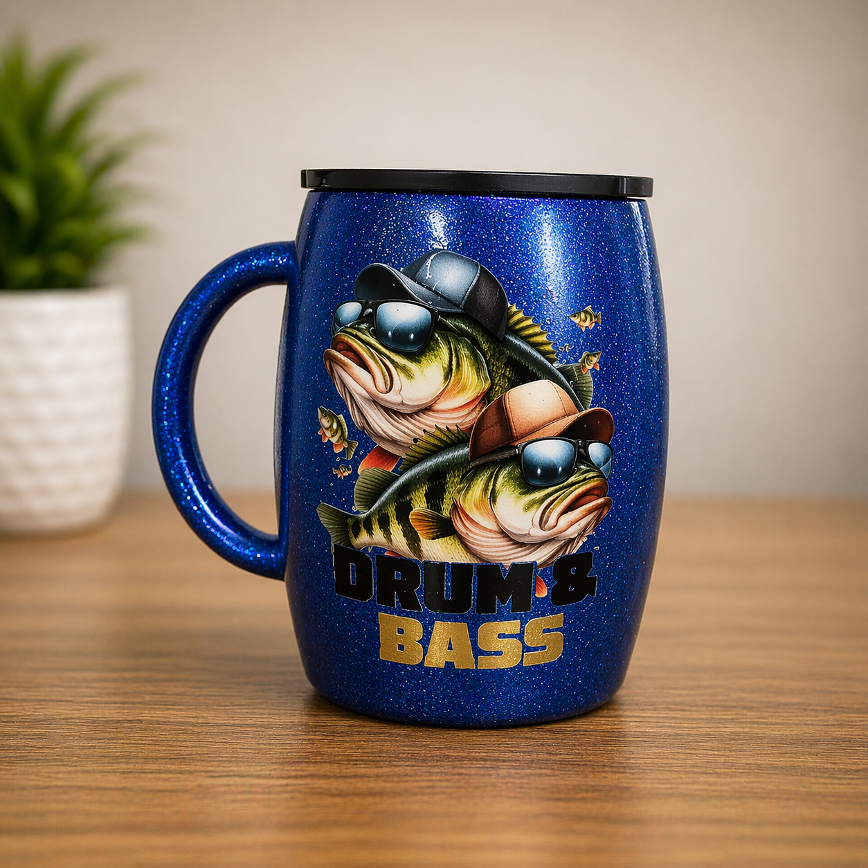 Crafted from durable stainless steel and sealed with a high-gloss epoxy finish, this mug-style tumbler offers both function and flair. The comfortable handle and included lid make it perfect for early mornings, long days, and everything in between — whether you're at work or dreaming about your next fishing trip.